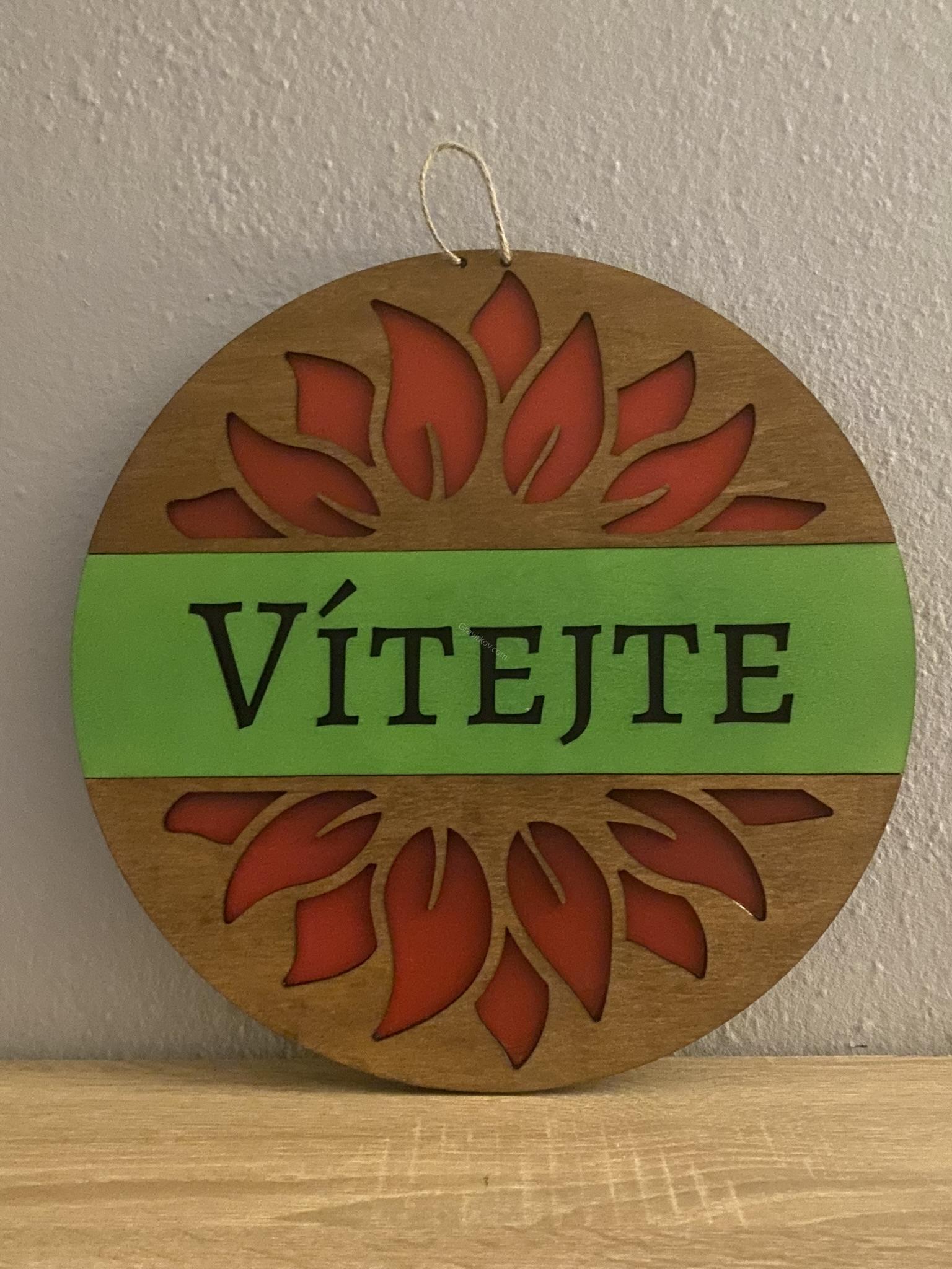 - Motiv: nápis „Vítejte“ s jemným květinovým dekorem - Barva: přírodní světlé dřevo (možné dále dozdobit dle vkusu)