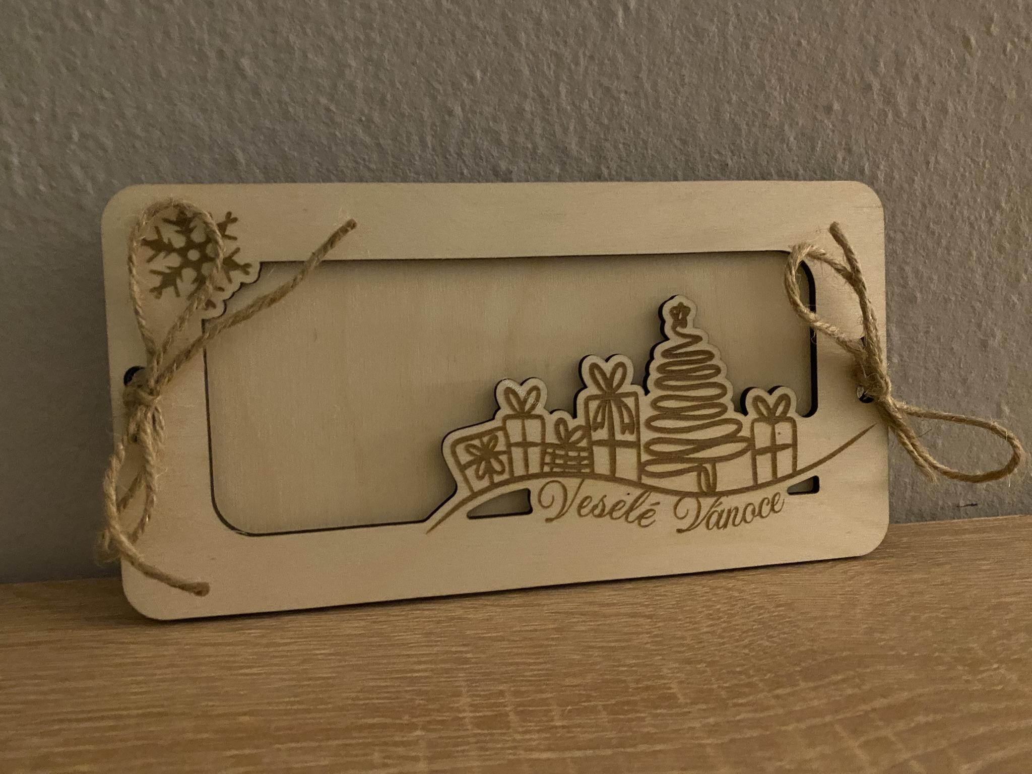 Dřevěné přání na bankovky - Veselé Vánoce 01229 Kč/ ks