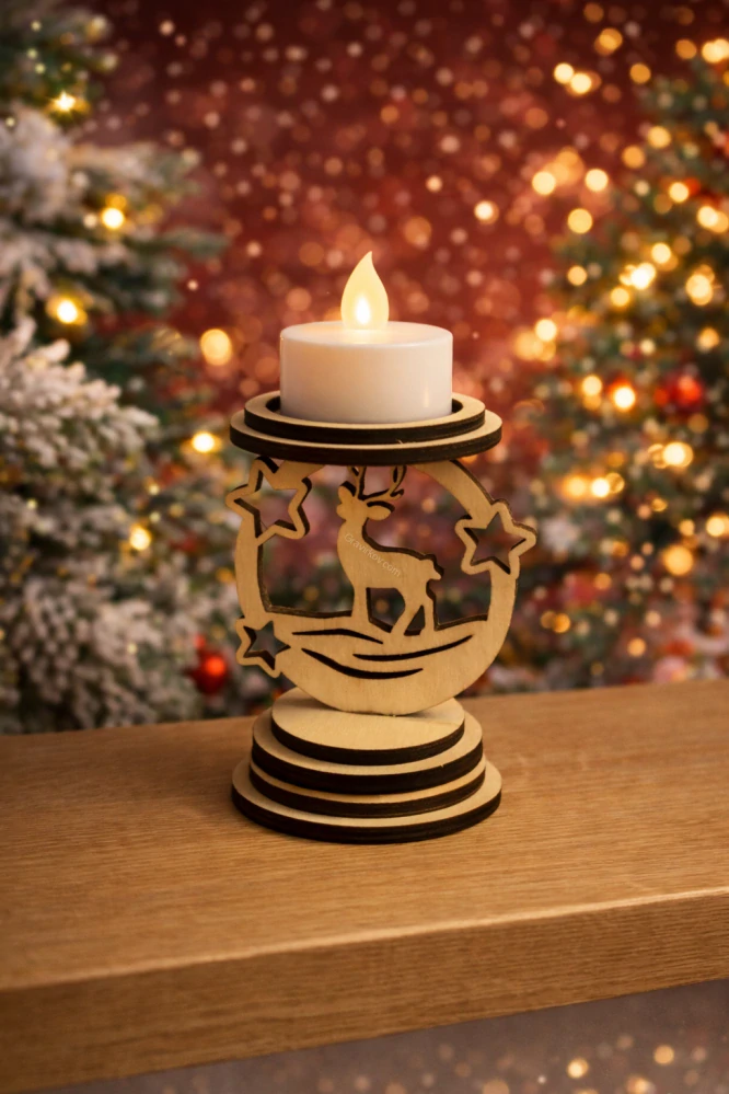 Vytvořte si doma hřejivou zimní atmosféru s naším držákem na svíčku ve tvaru jelena, který vzniká v malé rodinné dílně s důrazem na detail, kvalitu a poctivé řemeslo. Tato originální laserem vyřezávaná a gravírovaná dekorace z dřeva je ideálním doplňkem vánoční i zimní výzdoby.