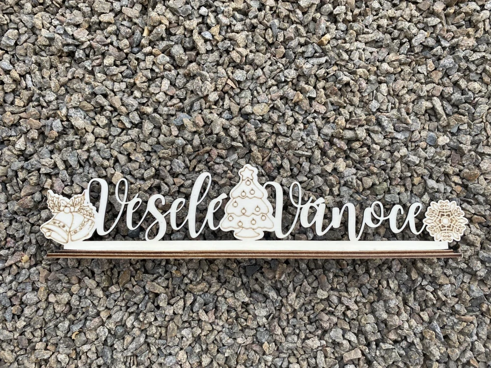Nápis Veselé Vánoce se stojánkem