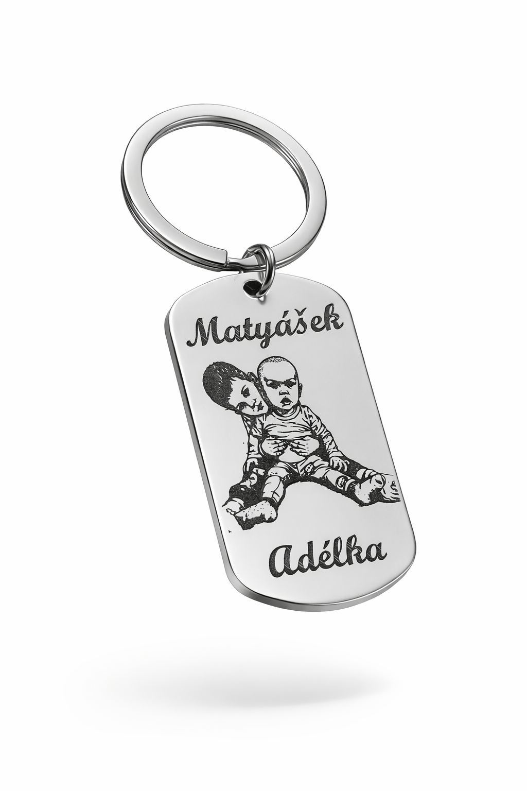 Nerezová klíčenka s gravírem podle fotografie – originální osobní dárek