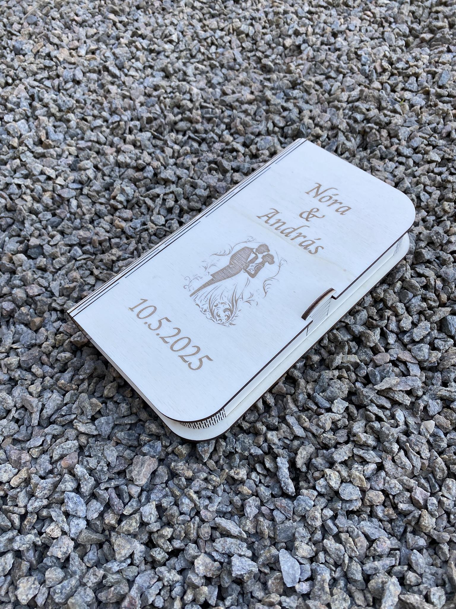 Přemýšlíte, jak originálně a elegantně předat novomanželům finanční dar? Naše otevírací dřevěná obálka na peníze je krásnou a zároveň praktickou alternativou ke klasickým papírovým obálkám. Tento stylový doplněk se stane nejen součástí slavnostního dne, ale i milou vzpomínkou, kterou si novomanželé rádi uschovají.