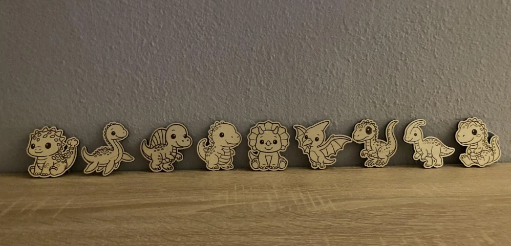 Naše laserem vyřezávané a gravírované magnetky „Dinosauři“ přinášejí do vašeho domova kombinaci přírodního materiálu, precizního zpracování a hravého designu.