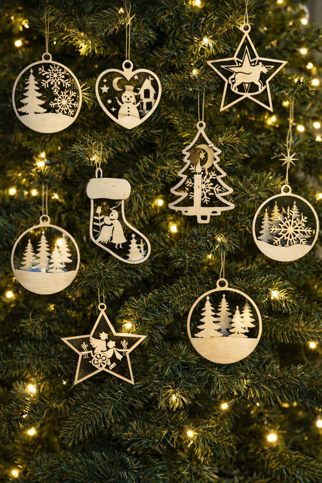 Ozdoba je vyrobena z kvalitní topolové překližky o tloušťce 3 mm, která je ideální pro jemné dekorativní výrobky. Tento materiál je lehký, pevný a má krásnou přírodní barvu, která dokonale zapadne do vánoční atmosféry. (gravirkov.com)