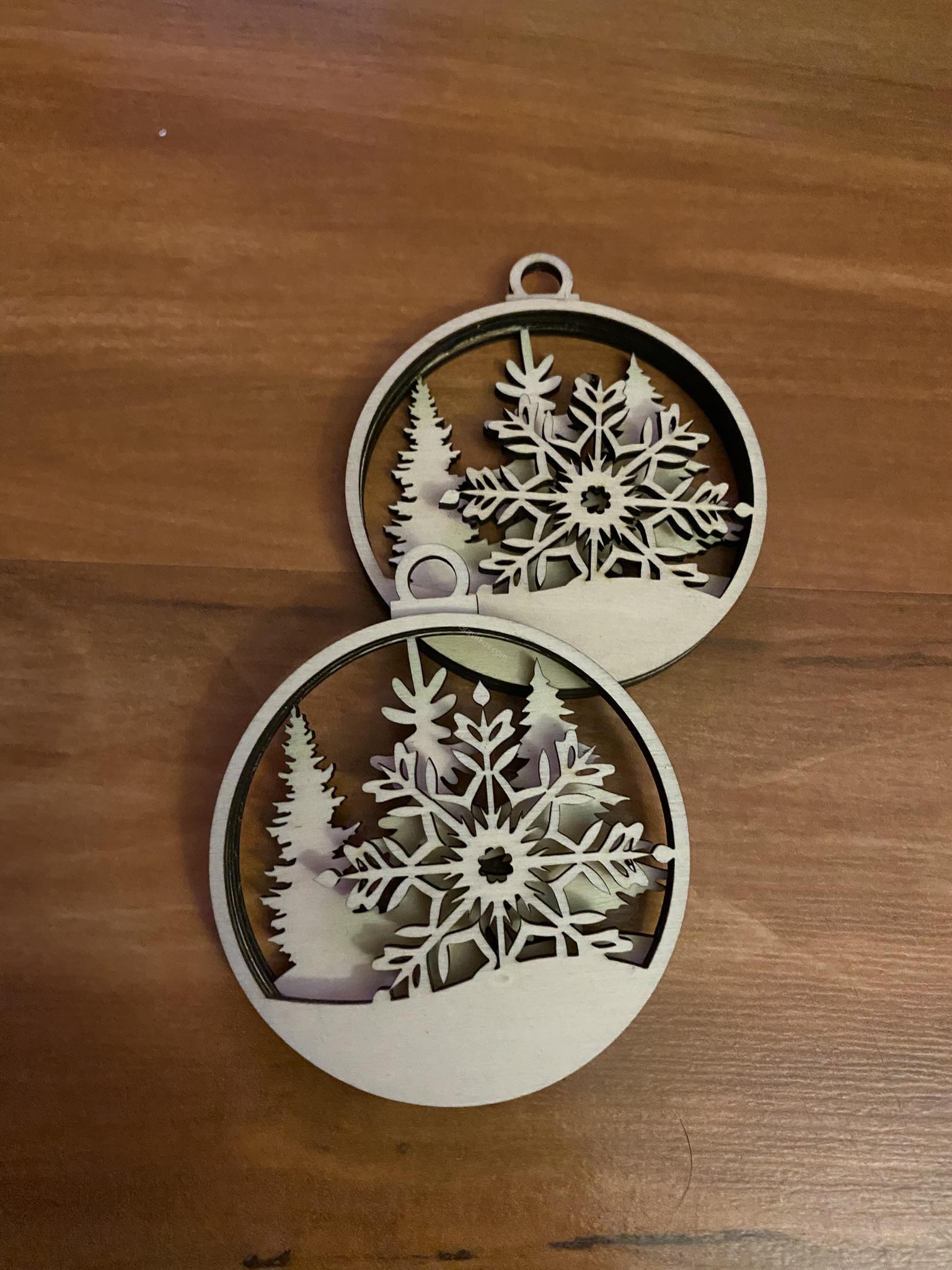Ozdoba je vyrobena z kvalitní topolové překližky o tloušťce 3 mm, která je ideální pro jemné dekorativní výrobky. Tento materiál je lehký, pevný a má krásnou přírodní barvu, která dokonale zapadne do vánoční atmosféry. (gravirkov.com)